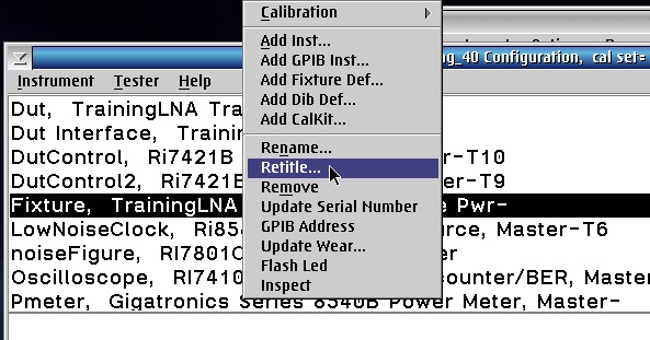 5. Highlight the Fixture or Dut Interface instrument by left clicking on the name and choose Retitle... from the right mouse button menu. (See Figure 3)