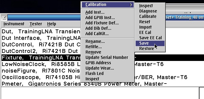 8. Choose Calibration > Save from the right mouse button menu to associate the new ESN with this definition and Title.